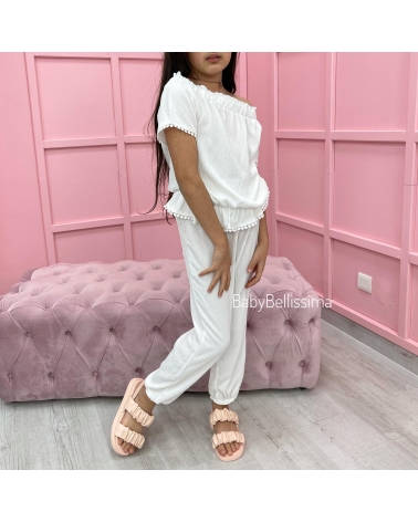 ENSEMBLE PANTALON + HAUT BLANC ( BABY )